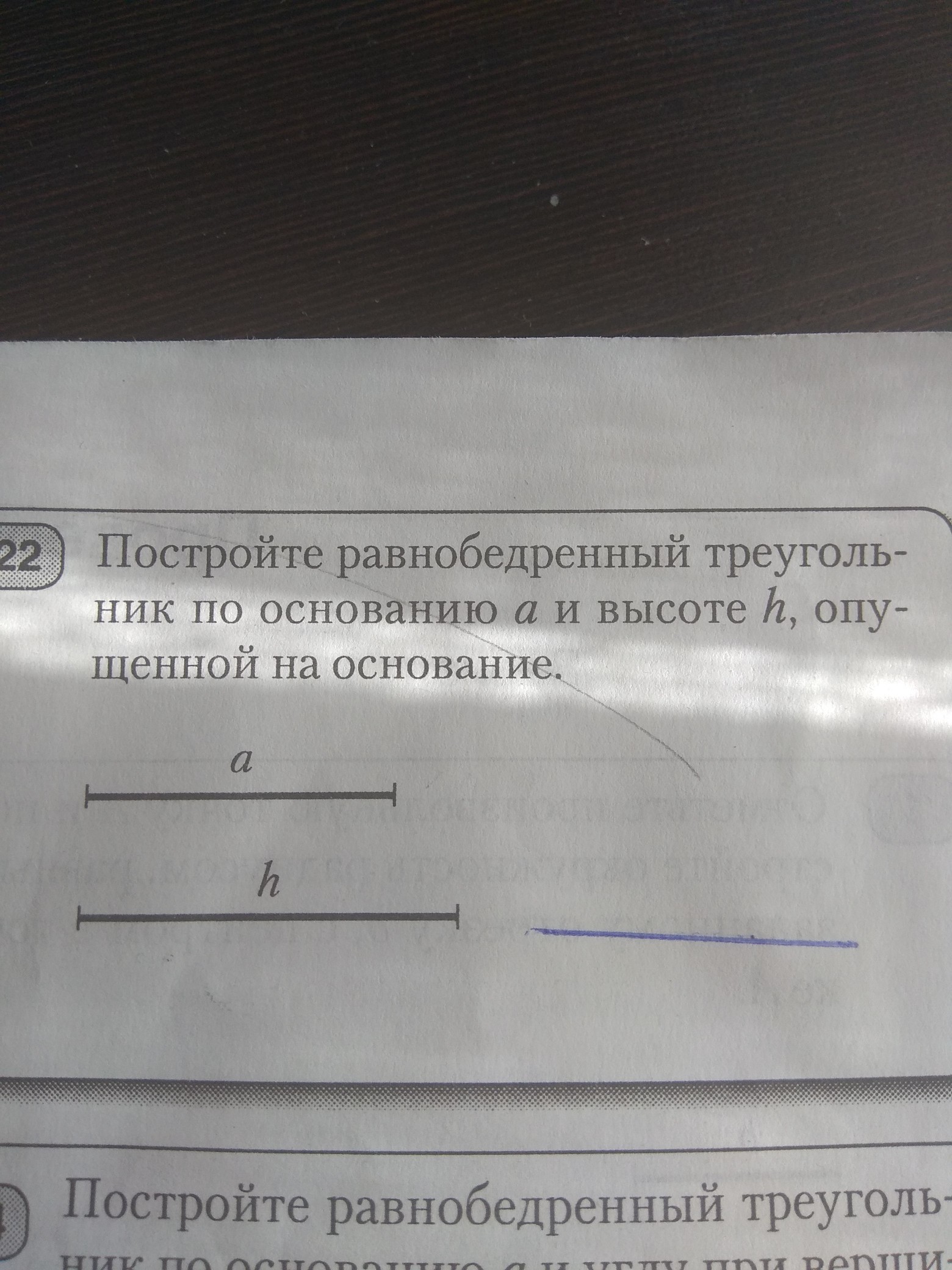 Постройте равнобедренный треугольник по основанию a и высоте h, опущенной на основание.