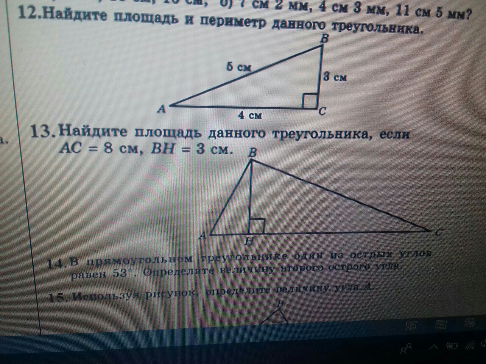 13) S = 1/2 * AC * BH = 1/2 * 8 * 3 = 12 (см^2)