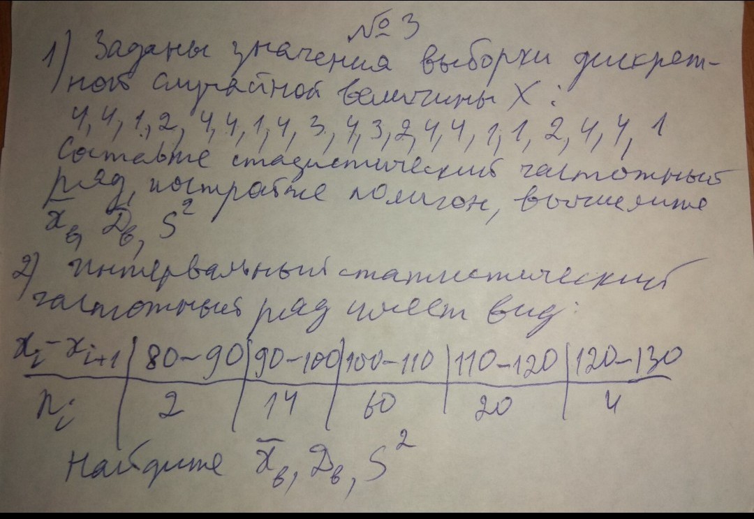 1)заданы значения выборки дискретной случайной величины x :