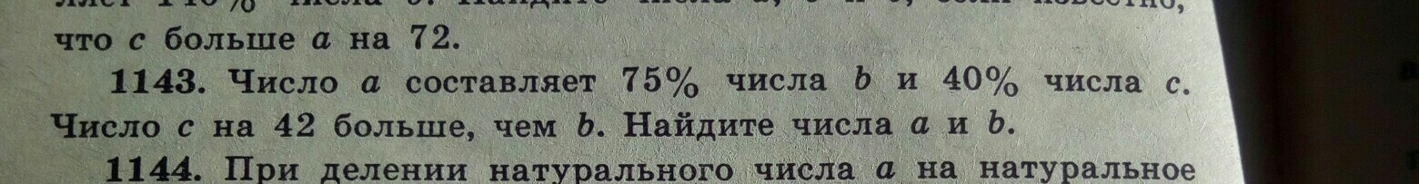 т.к. с=b+42, тогда (b*75)/100=((b+42)*40)/100, отсюда следует