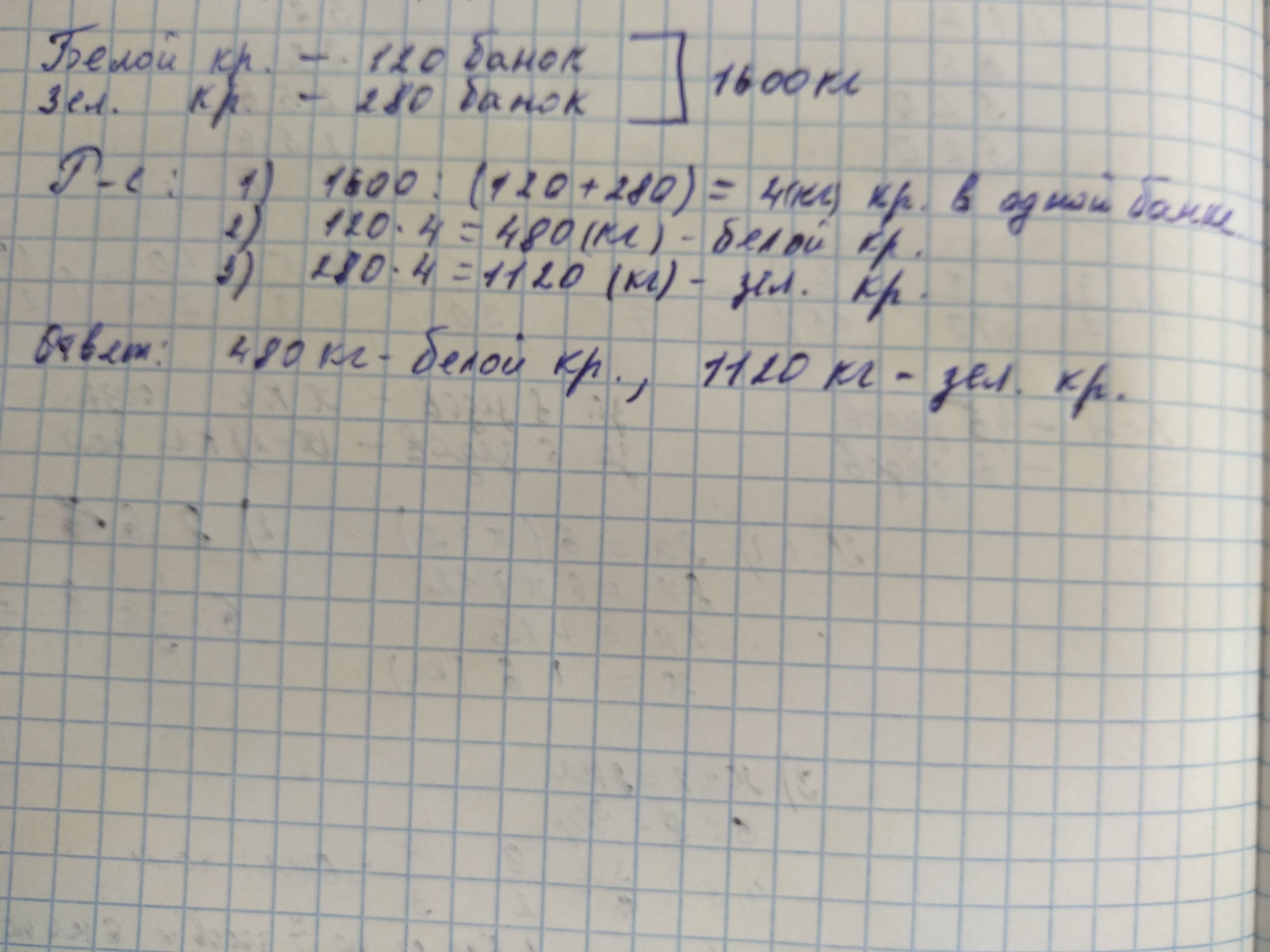 4)280*4=1120кг-зелёной краски