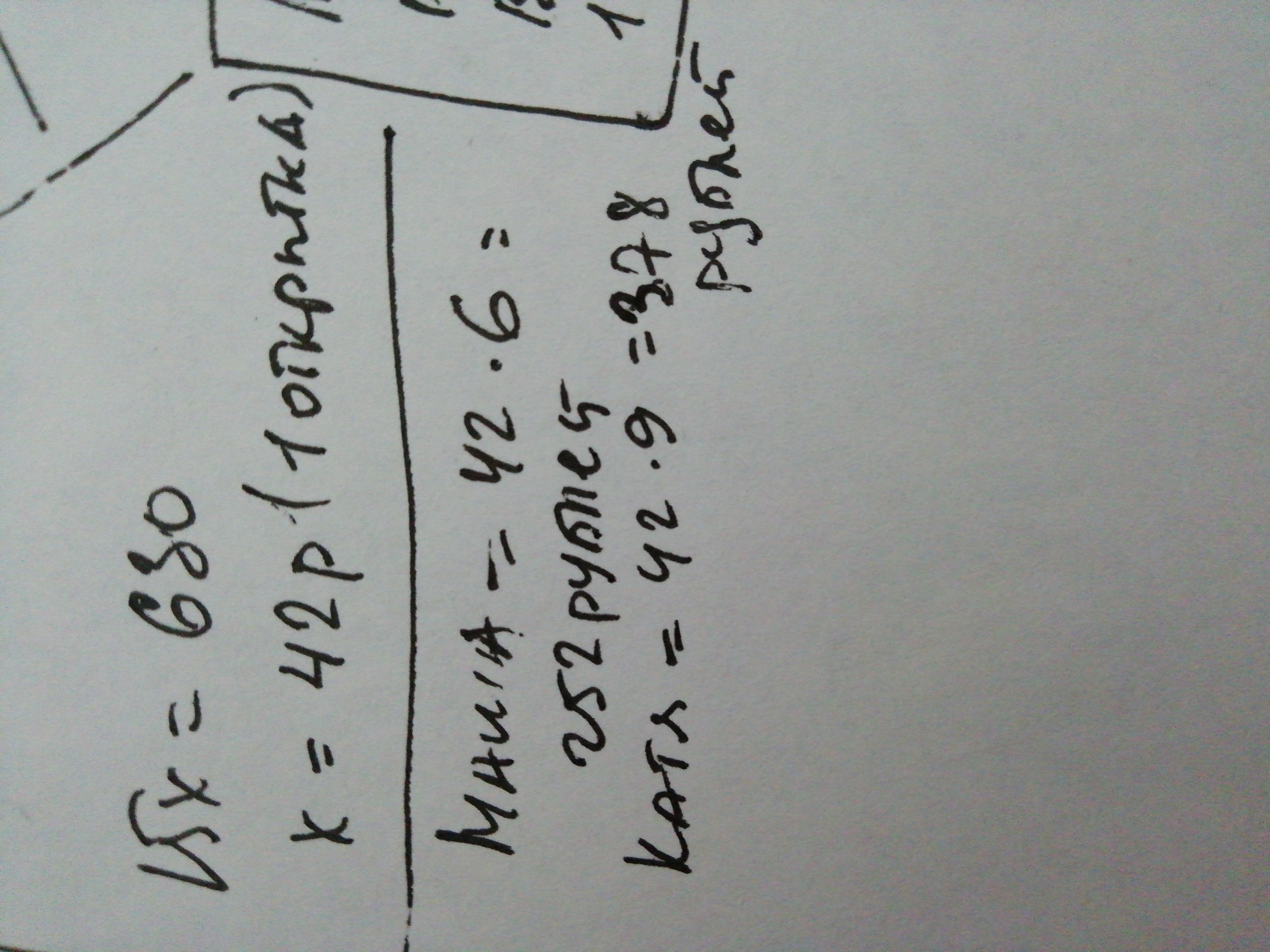 42*9=378(руб)-заплатила Катя