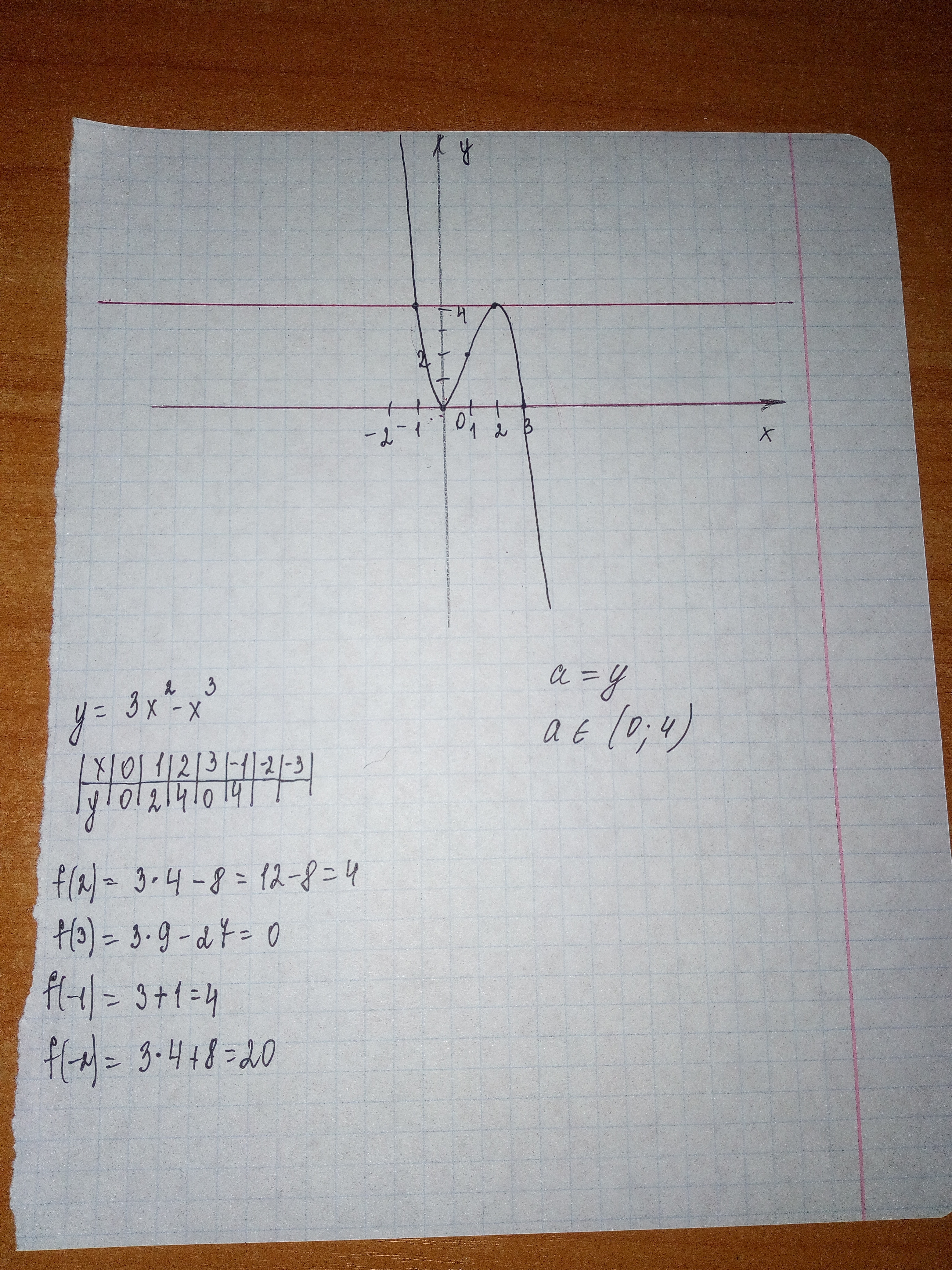 Сколько имеет корней заданное уравнение при указанных ограничениях на параметр 3x²-x³=a 0<а<4?