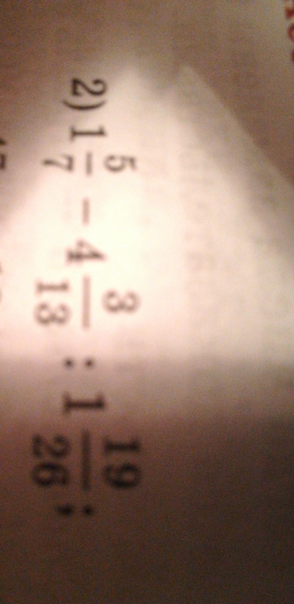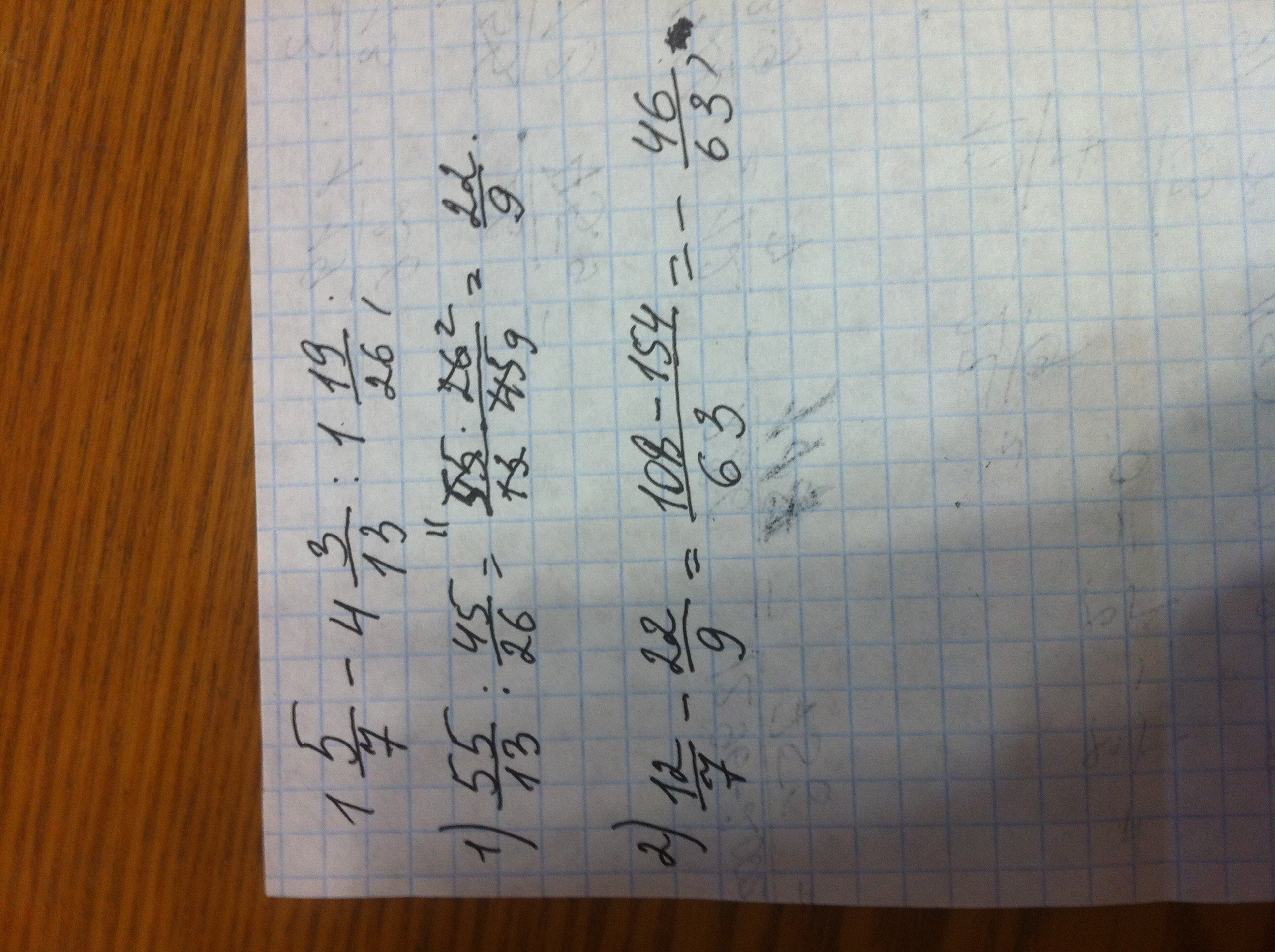 1 5/7 - 4 3/13 : 1 19/26= -1 46/63