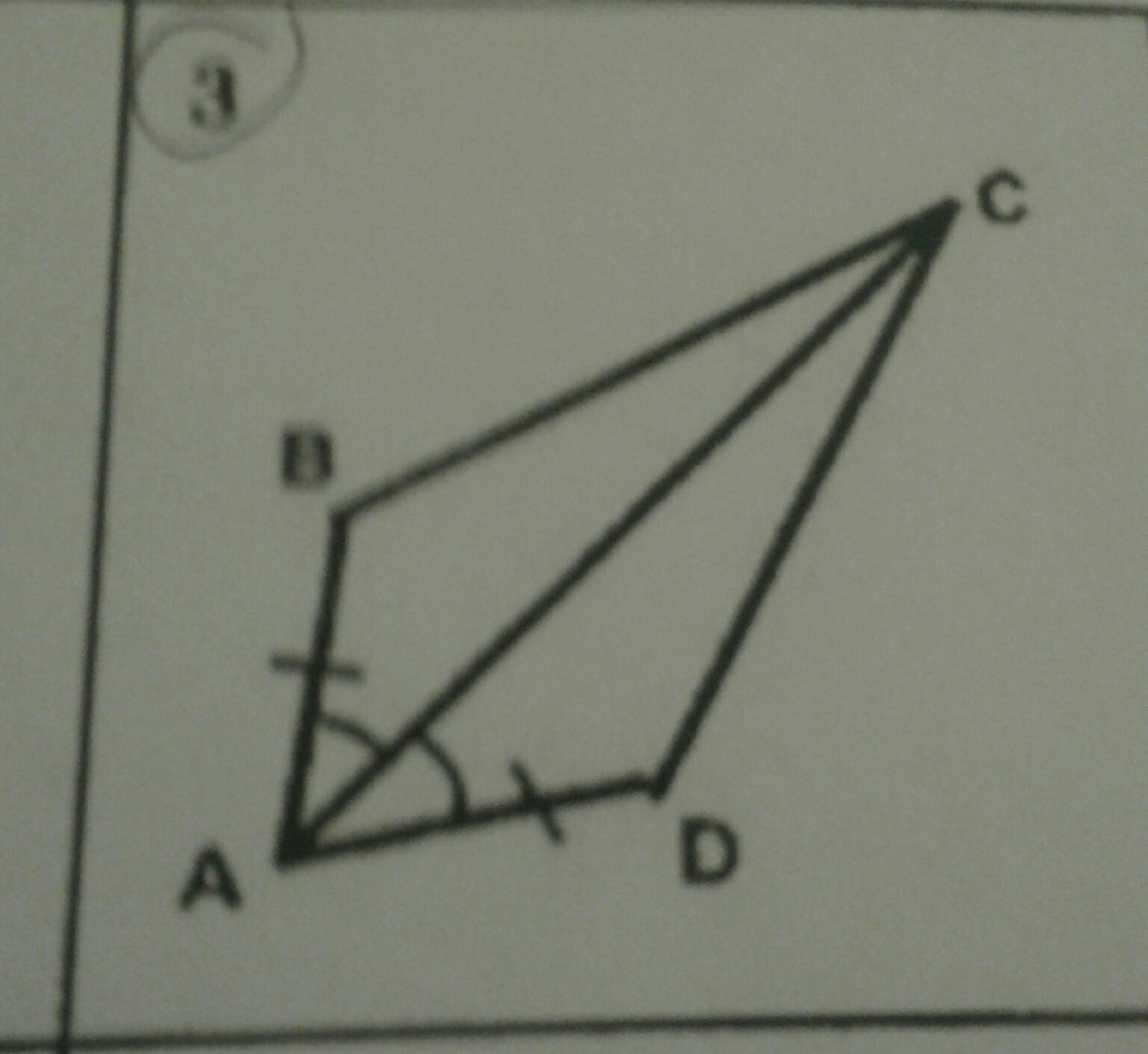 Треугольники равны по двум сторонам и углу между ними: AB = AD, AC -- общая, угол BAC = угол CAD.
