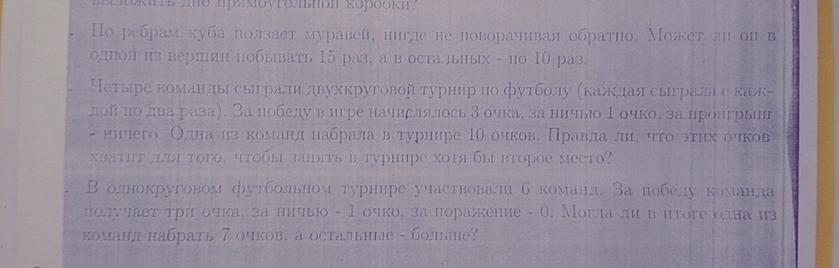 В последней задаче не уверен, но, судя по всему, нет вариантов чтобы всех остальных было больше 7 очков.