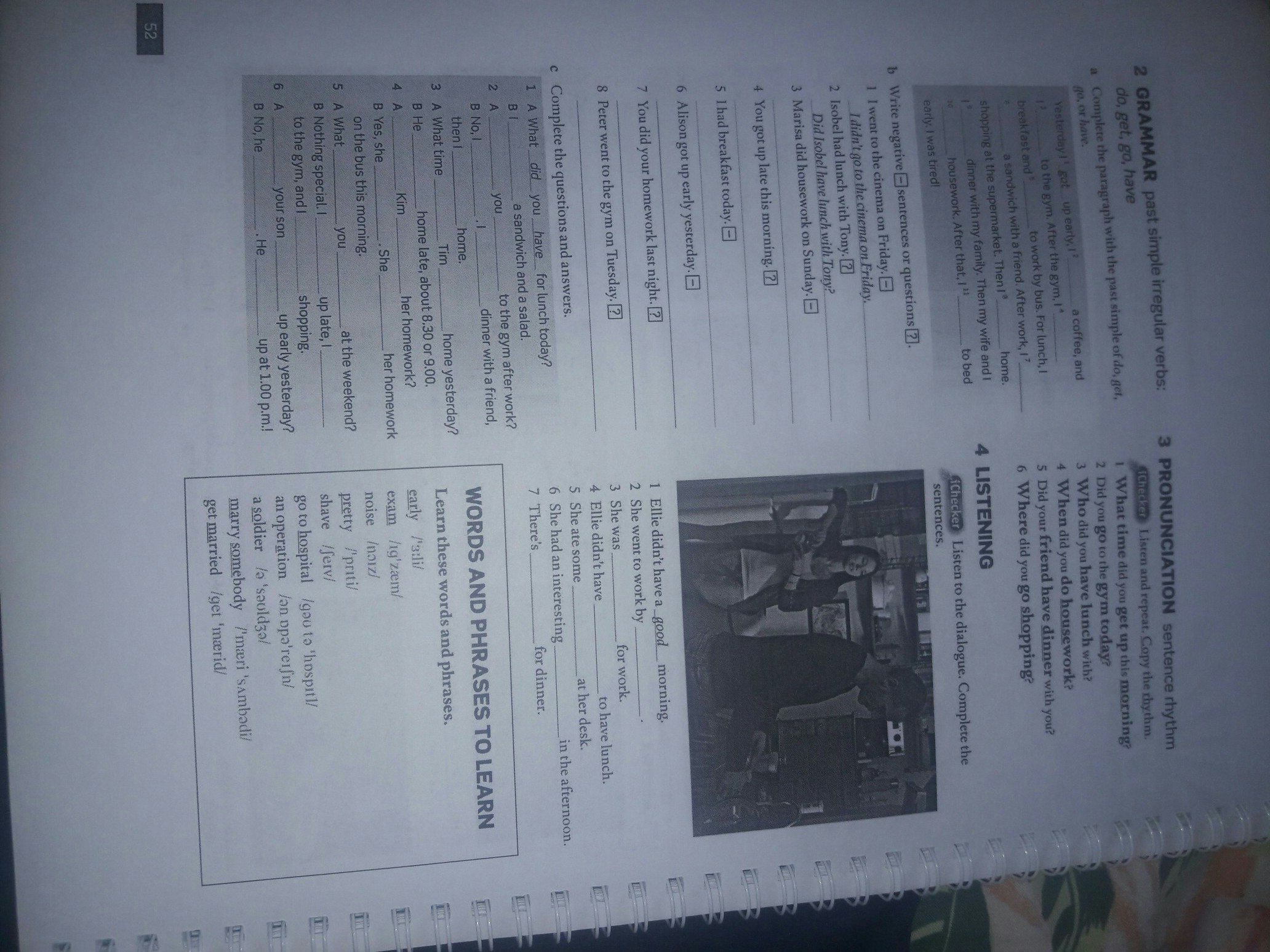 B: Nothing special. I got up, late I went to the gym , and I went shopping.