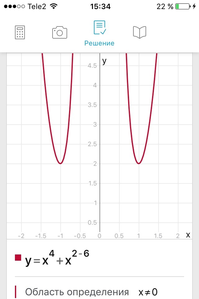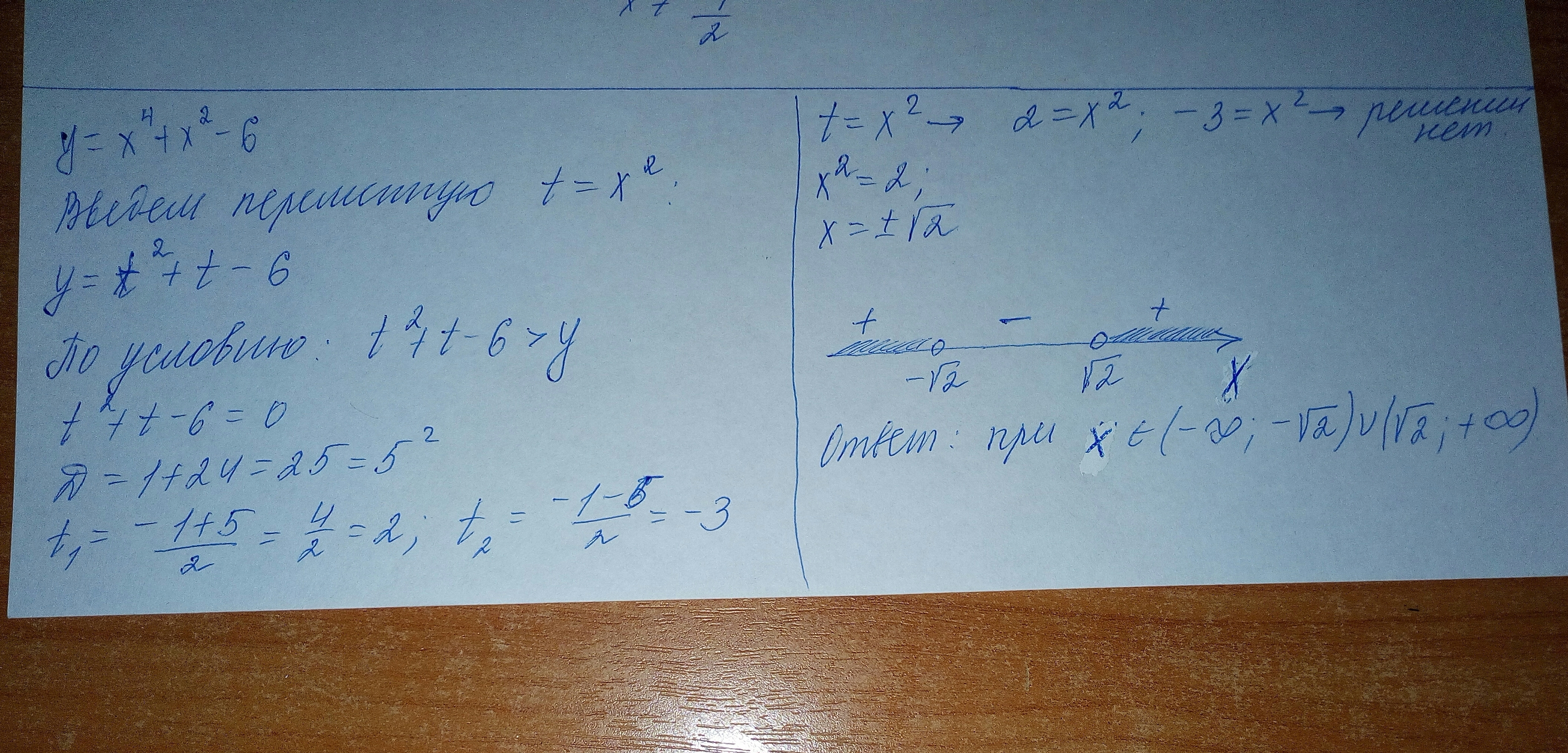 найдите все значения аргумента, при которых график функции y=x^4+x^2-6 расположен выше оси абсцисс