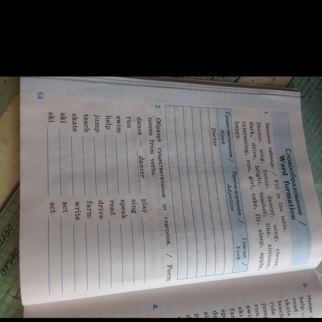 Сущ.: doctor, dancer, song, teacher, autumn, girl, cake, apple