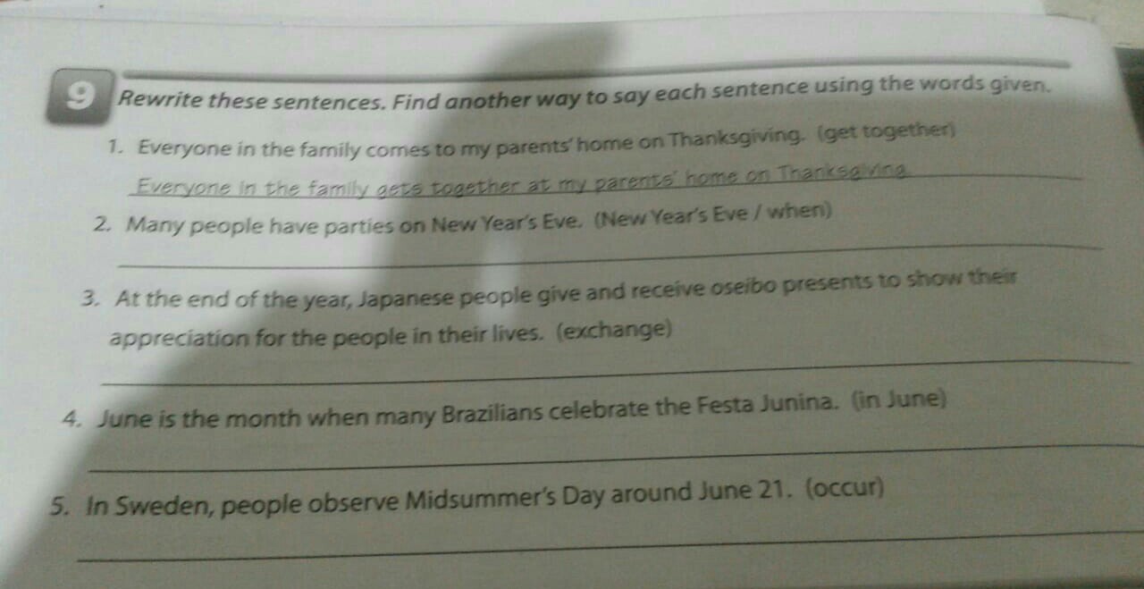 1 When many people have parties on New Year's Eye2At the end of the year Japanese people give and exchange osiebo presents at show their appreciation for the people in the lives 3In June at month when many Brazilians celebrate the Festa Junina