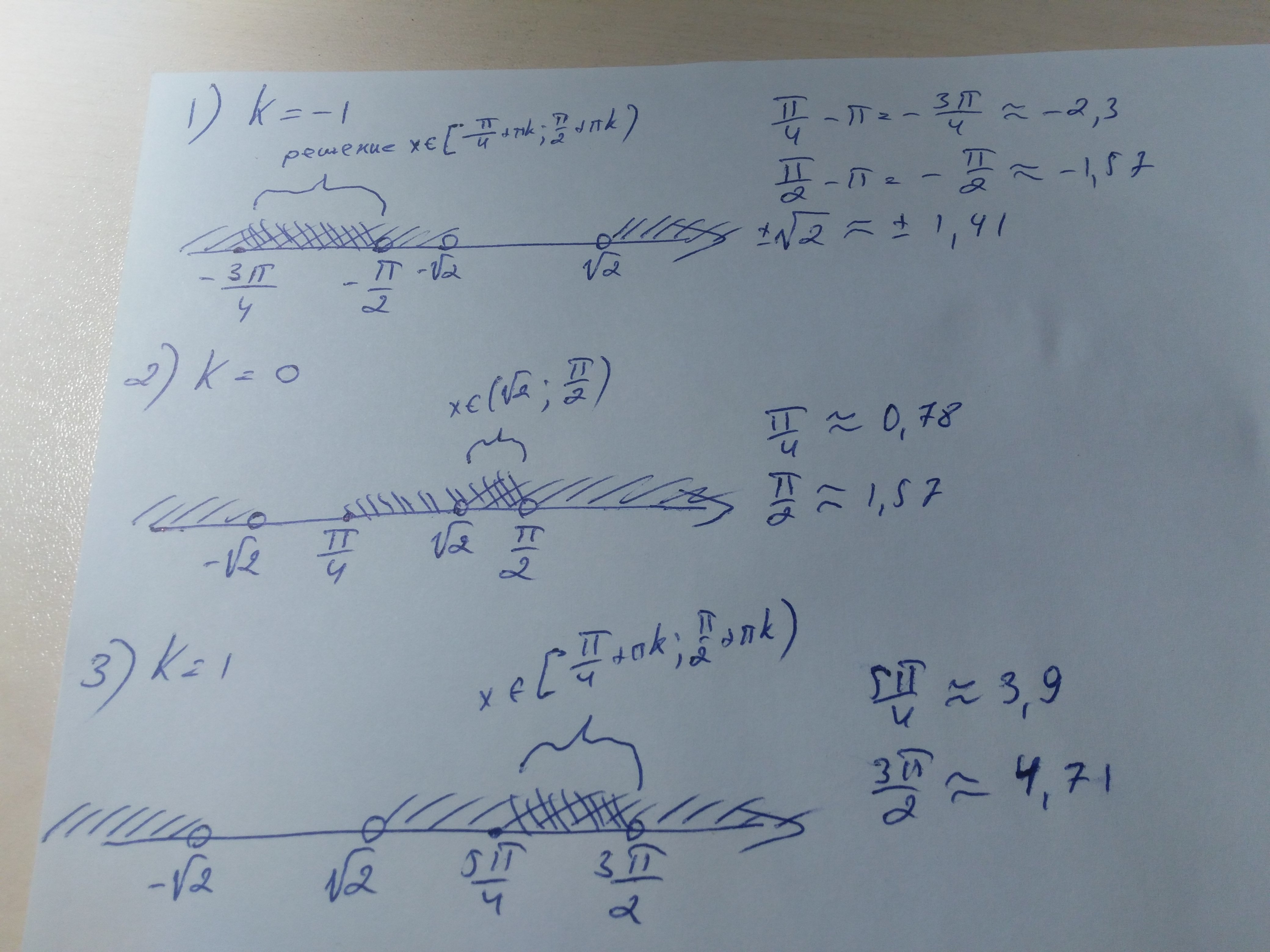 то нас интересуют только общие решения. Из-за того, что при k=0, п/4+пk=п/4∈(-√2; √2), система имеет решения, отличные от решений при k≠0. Именно поэтому отдельно требуется рассмотреть случай при k=0.