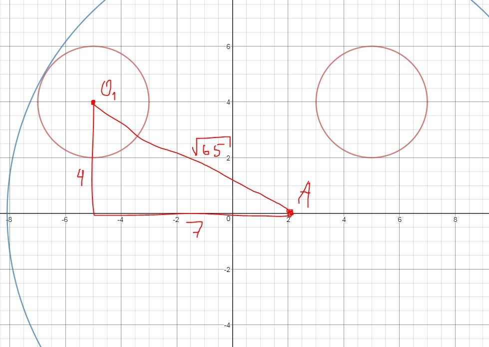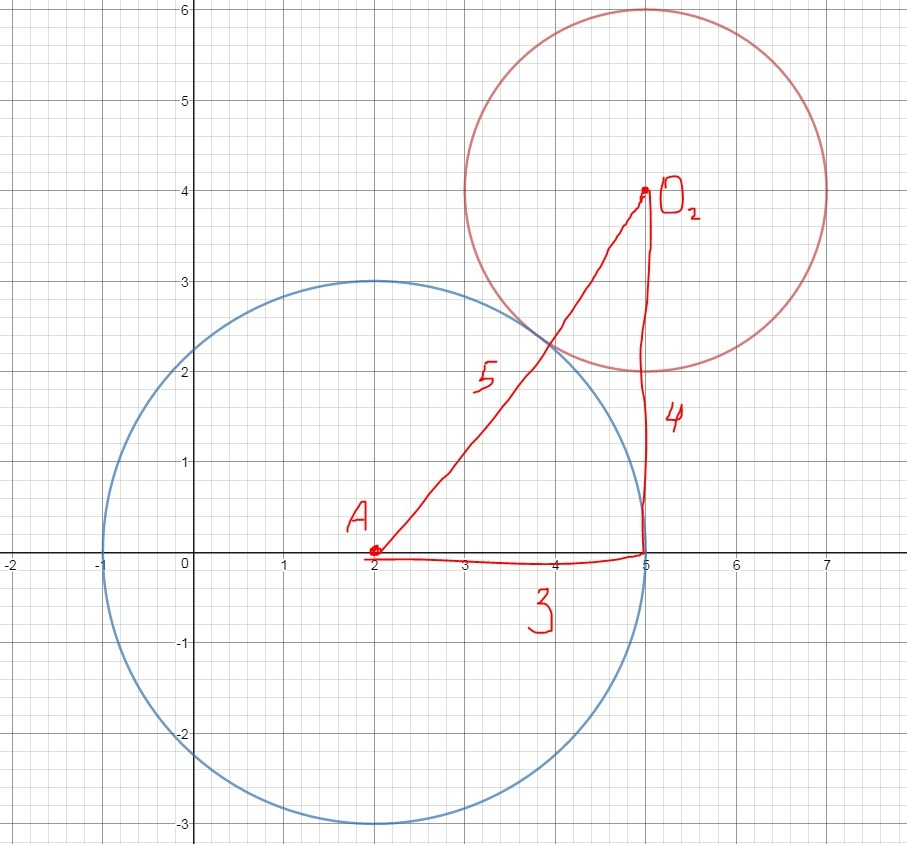2-е уравнение задаёт окружность с центром в точке и радиусом