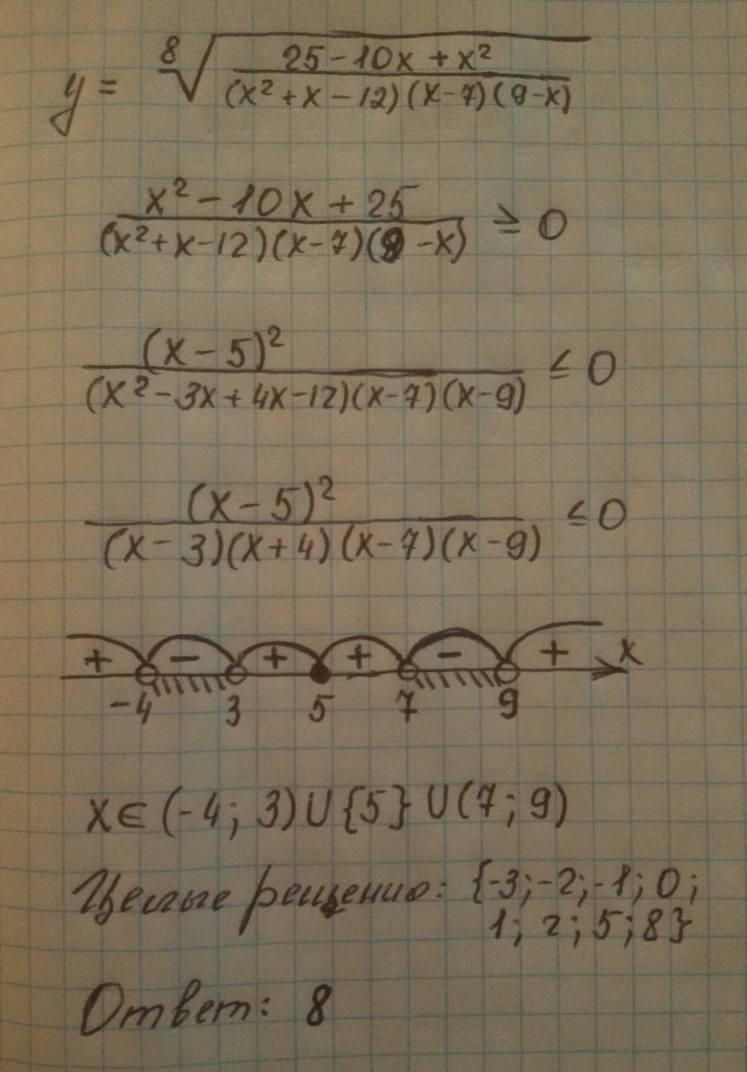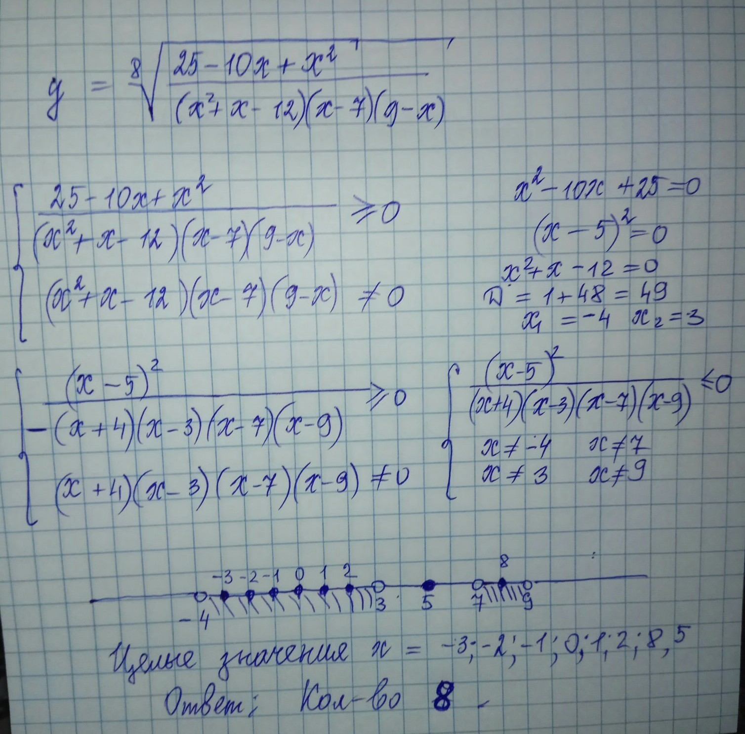 Помогите срочно . Математика. Найдите количество целых значений х, принадлежащих области определения функции