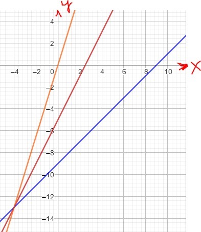 у=2х-5, у=х-9 і у=kх перетинаються в одній точці, знайдіть значення k, побудуйте в одній системі координат графіки цих функцій❤