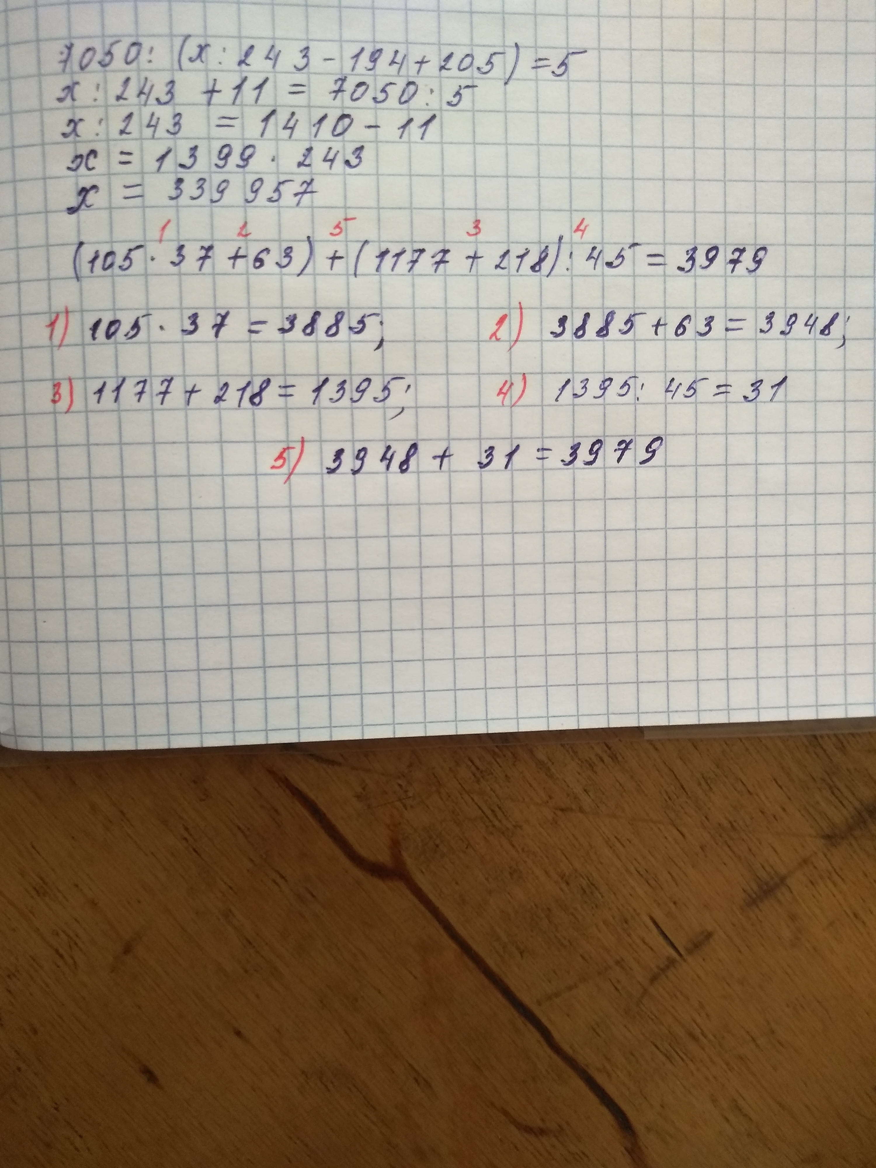 х:243-194+205=7050:5