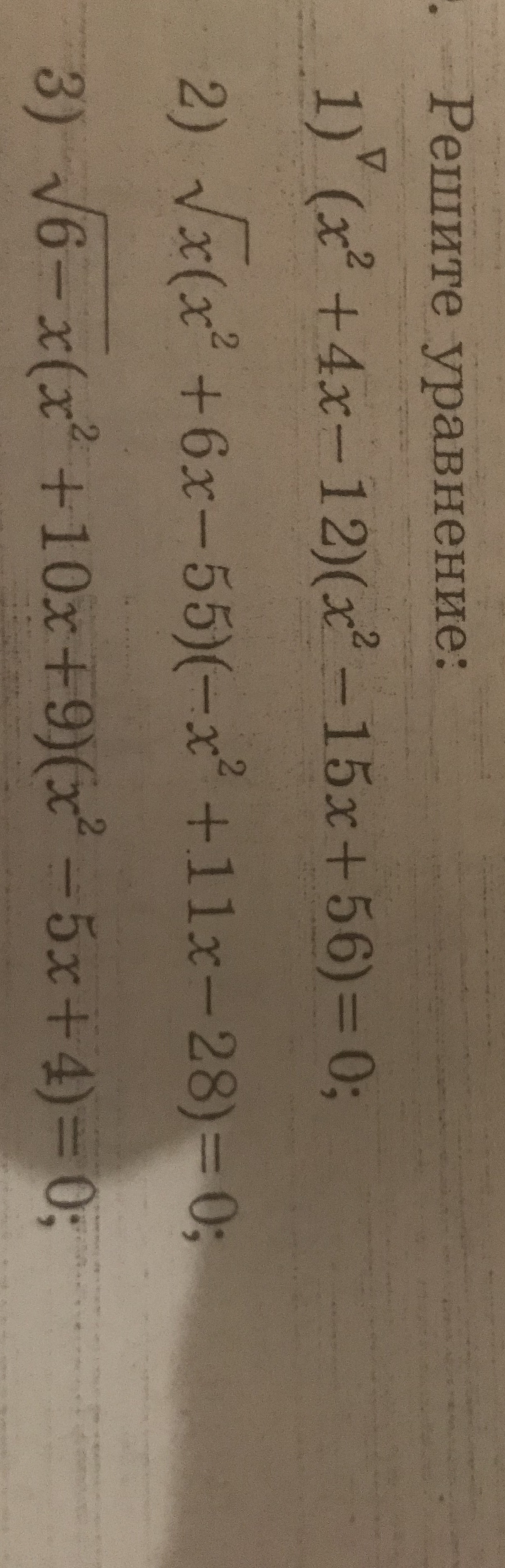 2. √x (x^2 + 6x - 55) (-x^2 + 11x - 28) = 0