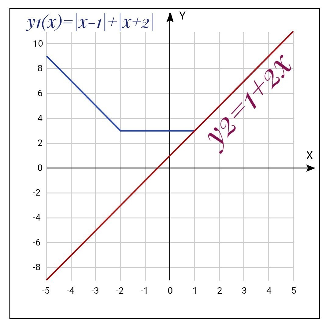 у1=-(х-1)+(х+2)=3 при -2≤х≤1