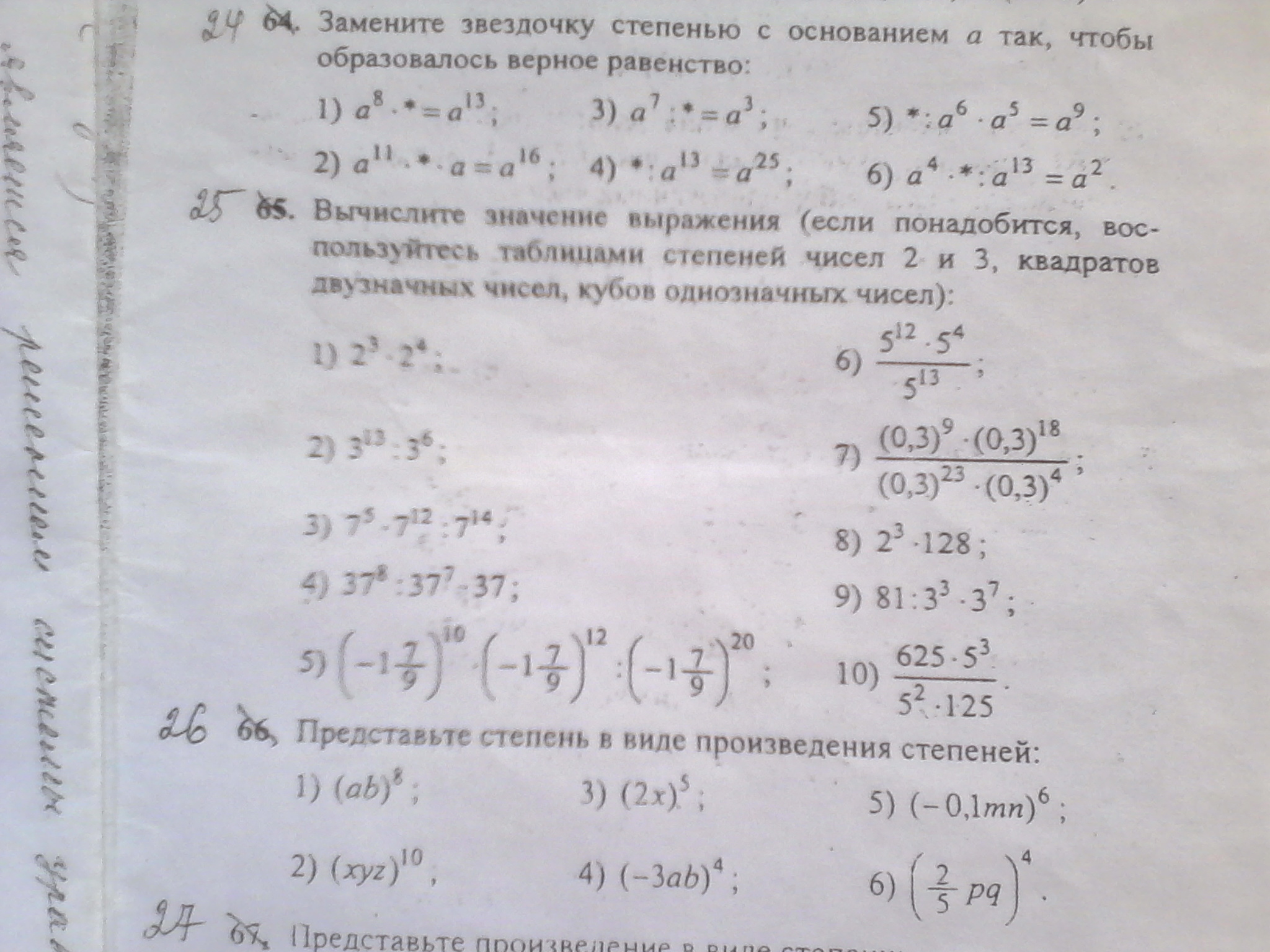 При умножении чисел с разными основаниями, но разными степенями, степени складываются; при делении - вычитаются.