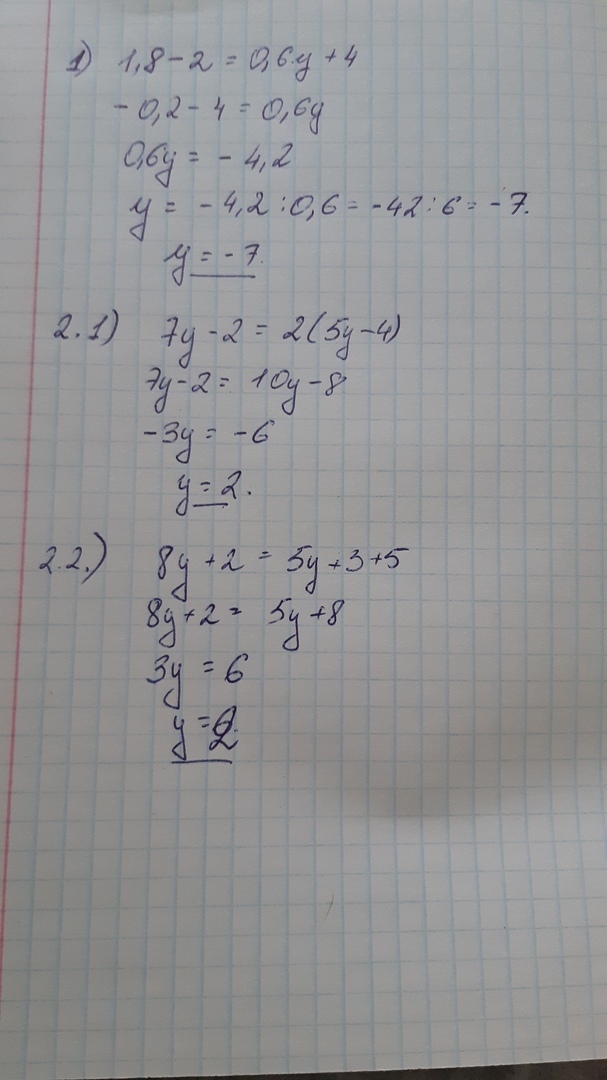 1,8-2 и 0,6у +4, 1,2у - 1 и 0,4у + 3?