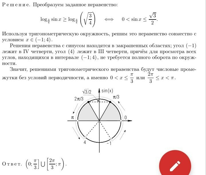 Соответственно, -1 радиан ≈ -57° — это 4-я четверть