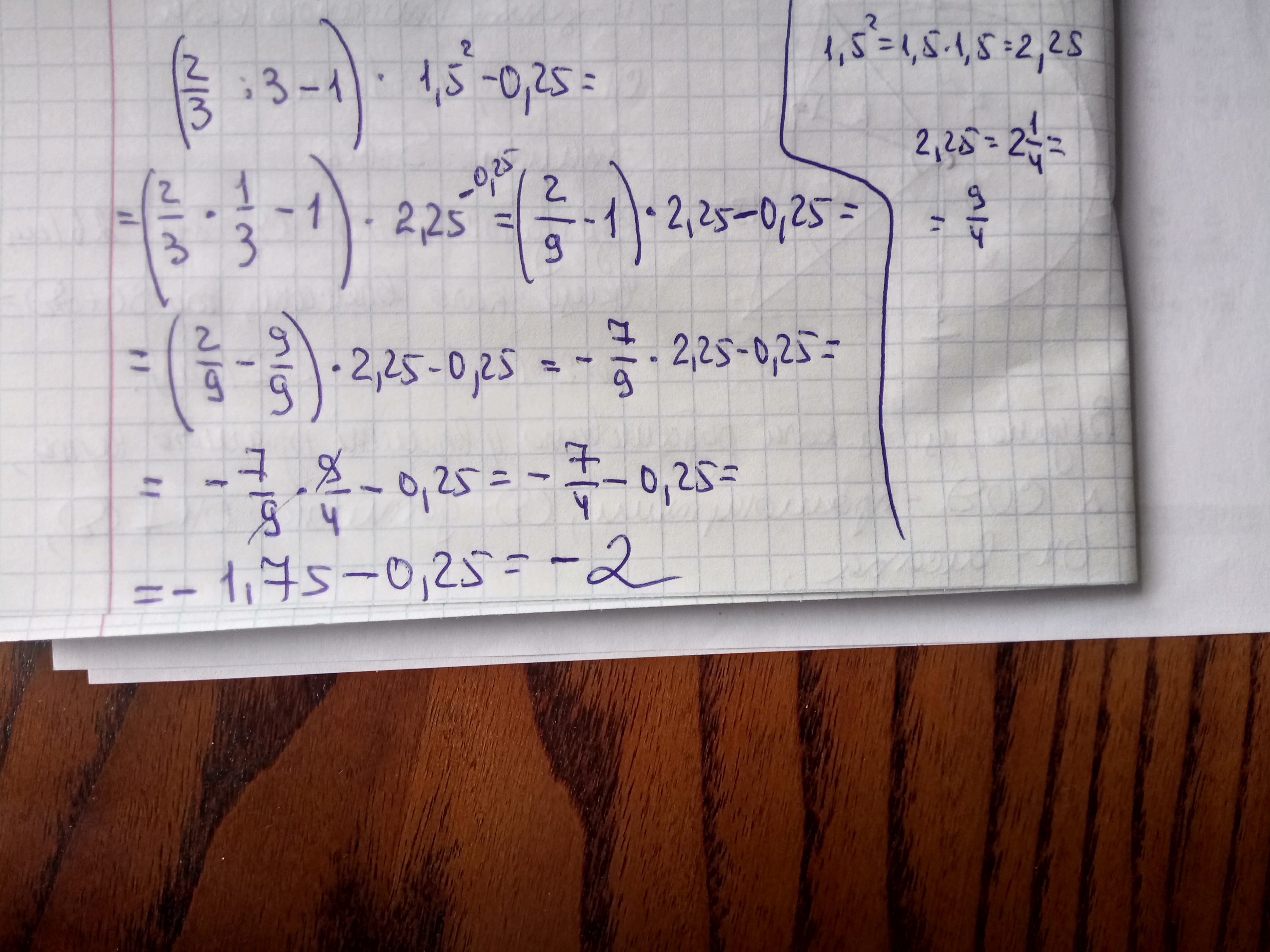 (-7/4) - 0.25 = (-7/4) - (1/4) = -8/4 = -2