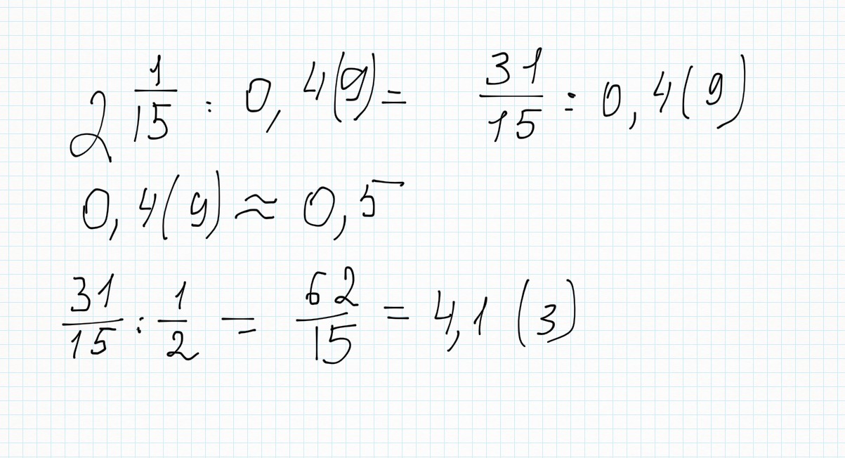 Хорошо,даже если 0,4(9)-это практически 0,5 ,тогда 31/15 : 0.5=4.13333