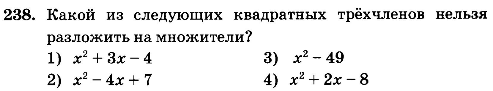 Какой из следующих квадратных трёхчленов нельзя разложить на множители?