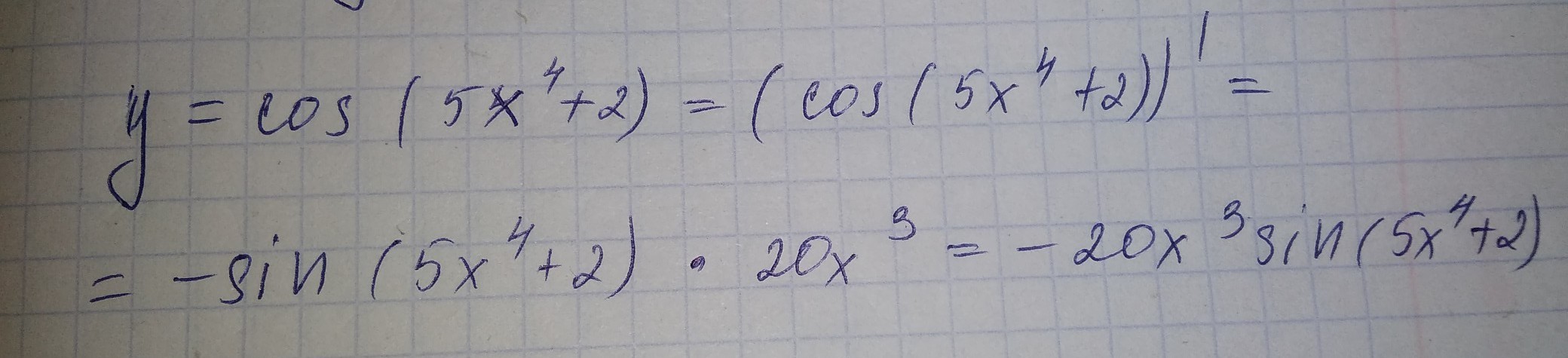 Так как это производная сложной функции, то необходимо найти производную одной функции и умножить на производную (в данном случае) аргумента.