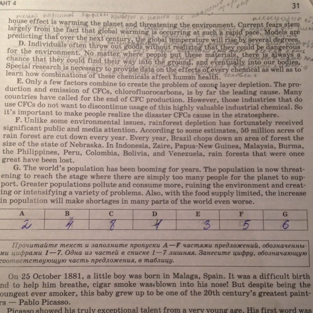 Г. Население в мире переживает настоящий бум в течение многих лет. Количество людей в настоящее время угрожает достичь той стадии, когда становится слишком много людей для планеты, чтобы существовать. Большая часть населения загрязняет и потребляет больше, разрушая окружающую среду, создаёт целый ряд проблем. Кроме того, продукты питания ограничены, увеличение населения способствует нехватке пищи во многих частях мира и ситуация со временем становится всё хуже.