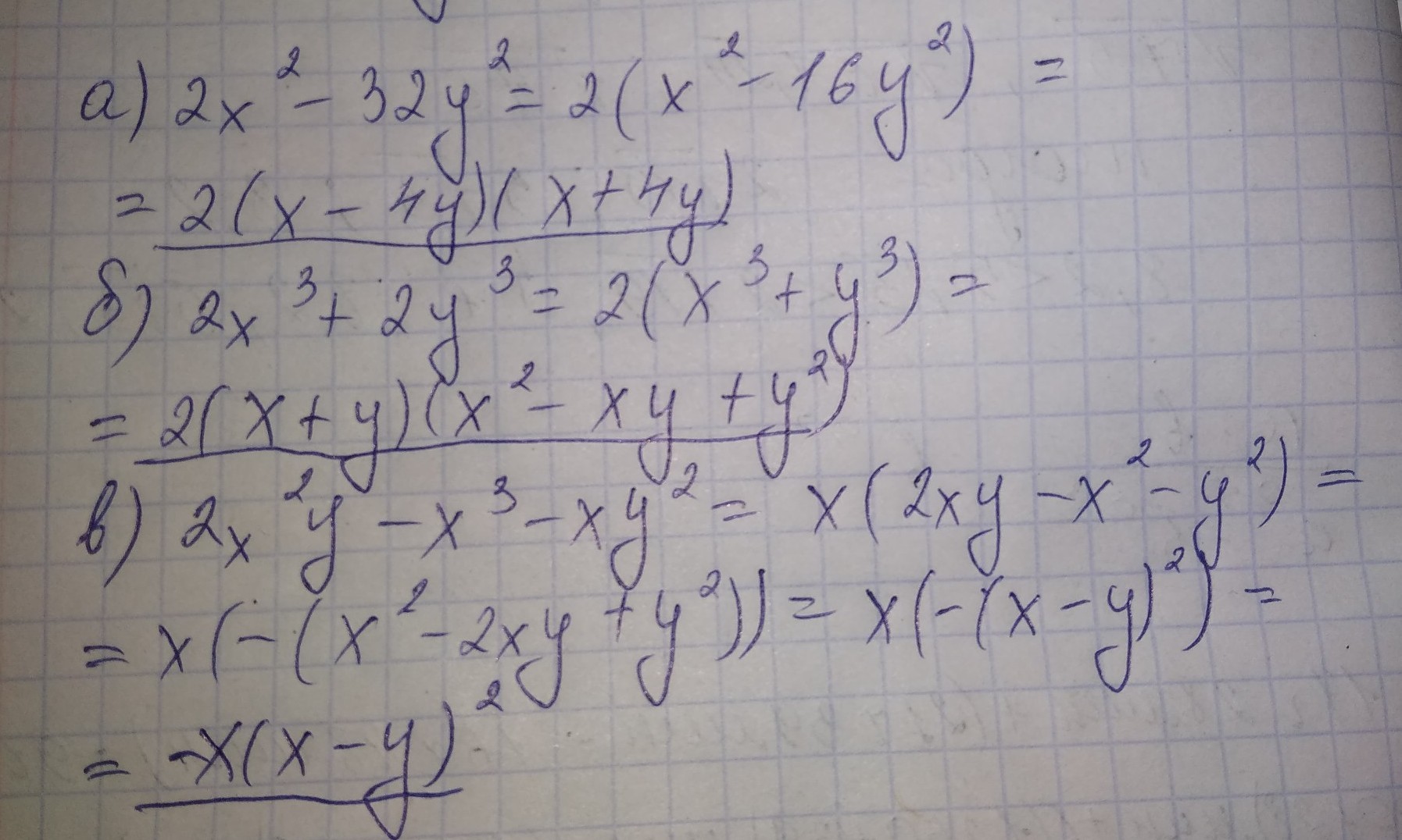 а)2х^2-32y^2=2(x^2-16y^2)=2(x-4y)(x+4y)