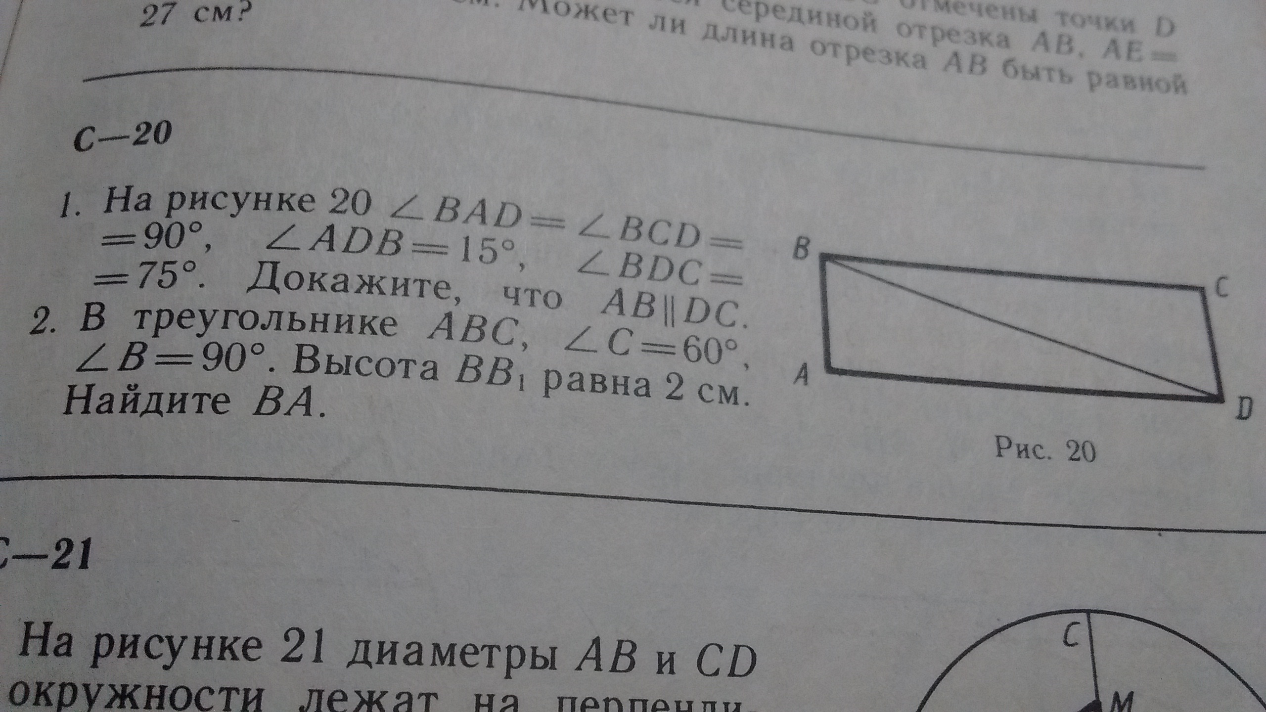 В ΔАВD: ∠ABD=180°-(∠BAD+∠ADB)=180°-(90°+15°)=75°