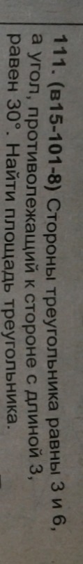 Пусть дан треугольник АВС, где АВ=3, АС=6, ∠С=30°. Найти S(АВС).