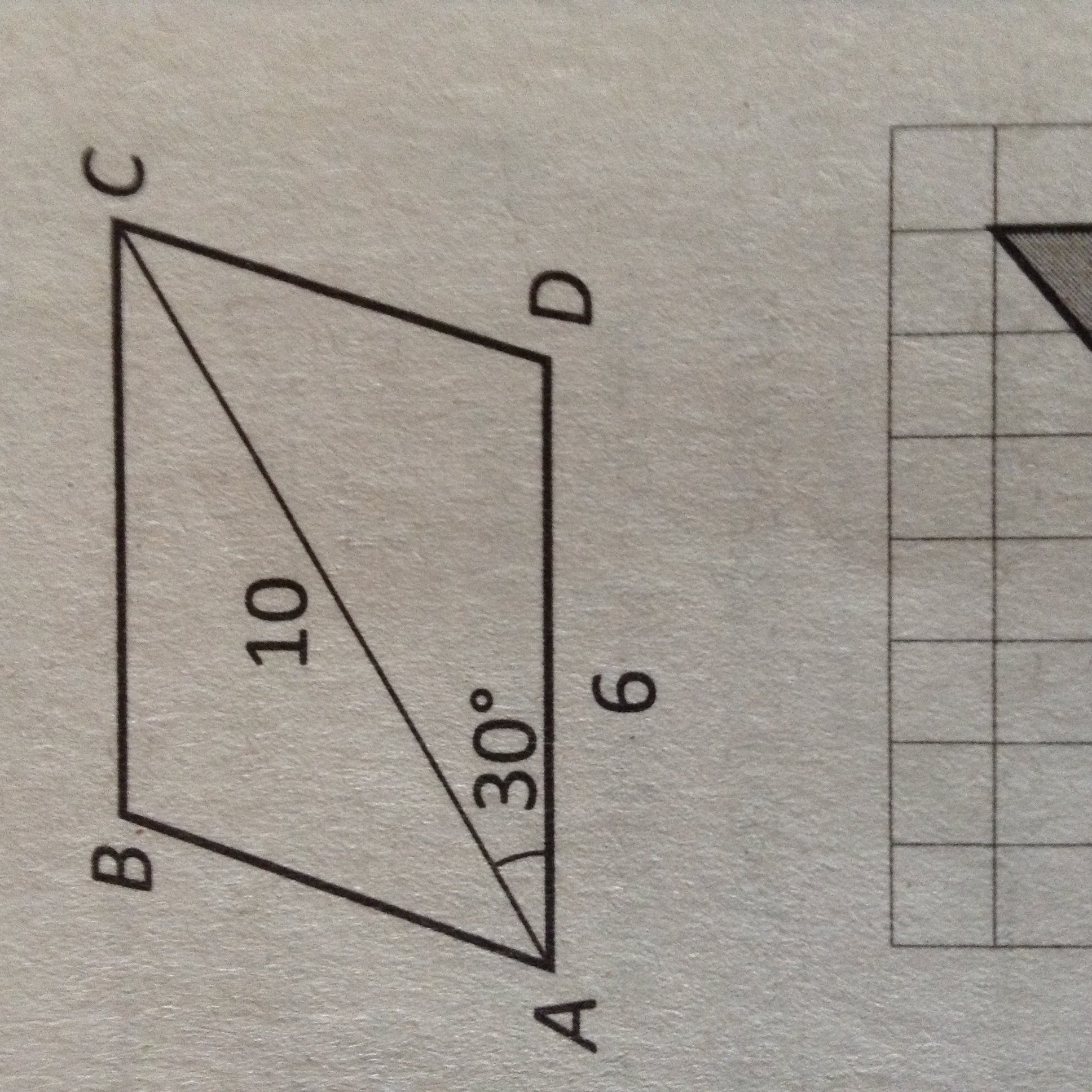.Диагональ AC параллелограмма ABCD образует со стороной AD угол, равный 30 градусов. Найдите площадь параллелограмма ABCD, если известно, что AC = 10, AD = 6
