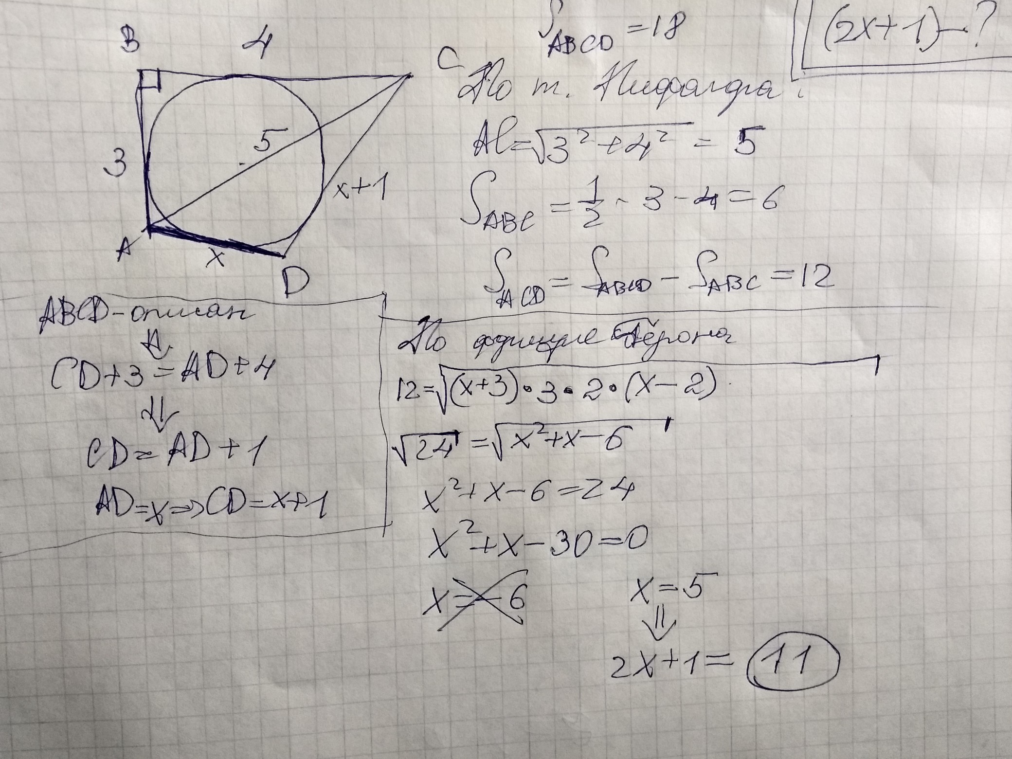 На рисунке и в левой части изображения расписано, как выразить СD через AD. По итогу полупериметр получается выраженным через одну переменную x=AD
