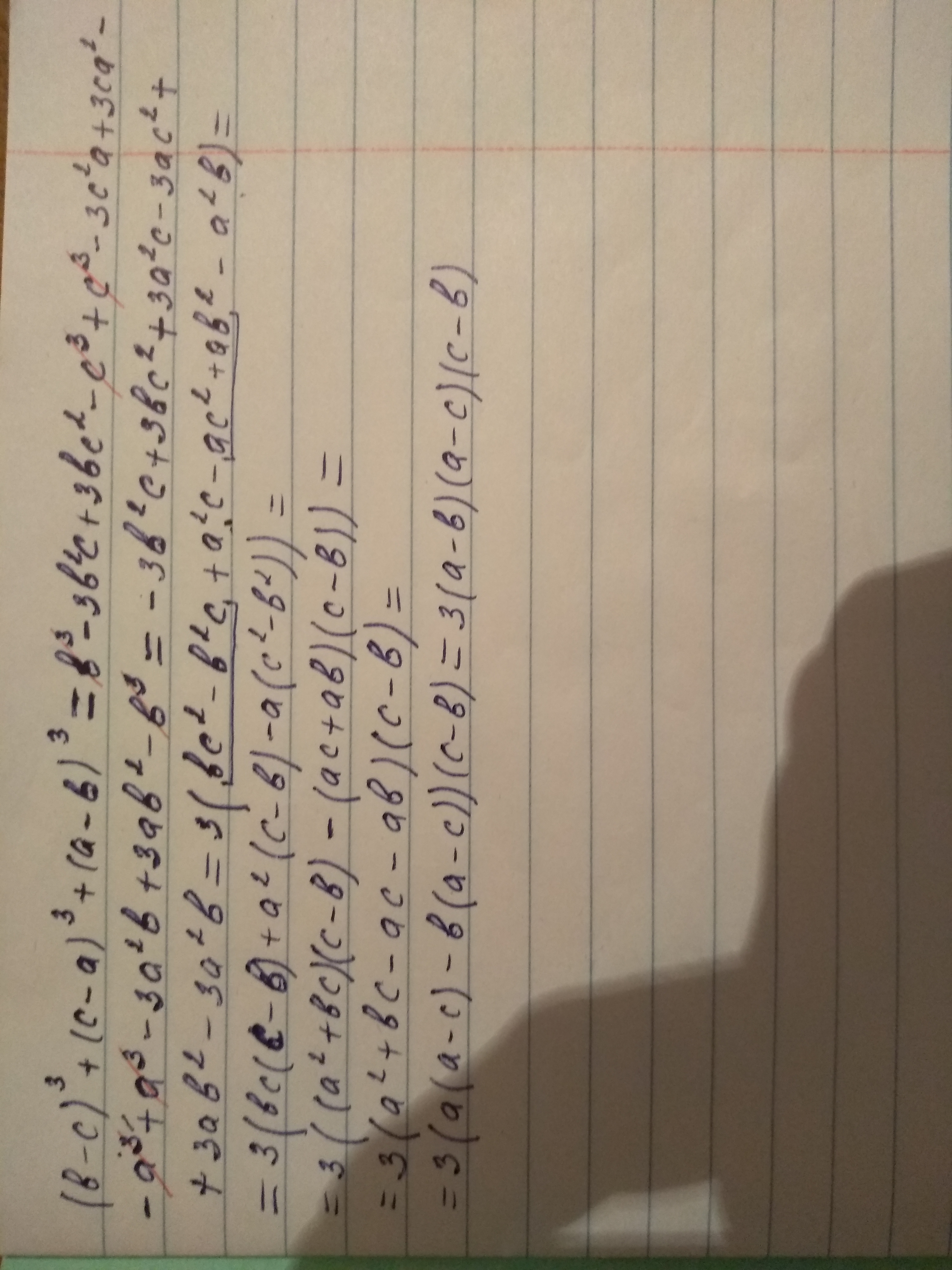 (b-c)³+(c-a)³+(a-b)³=b³-3b²c+3bc²-c³+c³-3ac²+3a²c-a³+a³-3a²b+3ab²-b³=-3b²c+3bc²-3ac²+3a²c-3a²b+3ab²