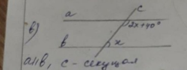 Угол равный 2x + 40° и угол равный x - это внутренние односторонние углы при параллельных прямых a и b и секущей с , а значит их сумма равна 180° . Составим и решим уравнение :