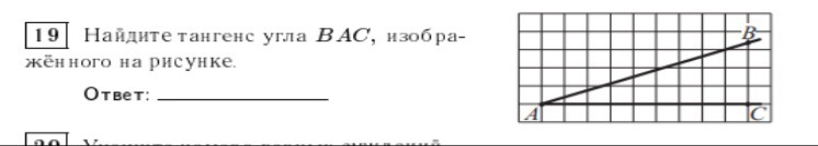 Правильность решения подобных задач зависит от верного нахождения катетов, составляющих прямоугольный треугольник, т.е. вершины такого треугольника должны находиться в точках пересечения горизонтальных и вертикальных линий клеток. На рисунке вложения это точки А, К и М. Тангенс - отношение катета, противолежащего углу, к прилежащему. tgBAC=KM:АМ=3/8