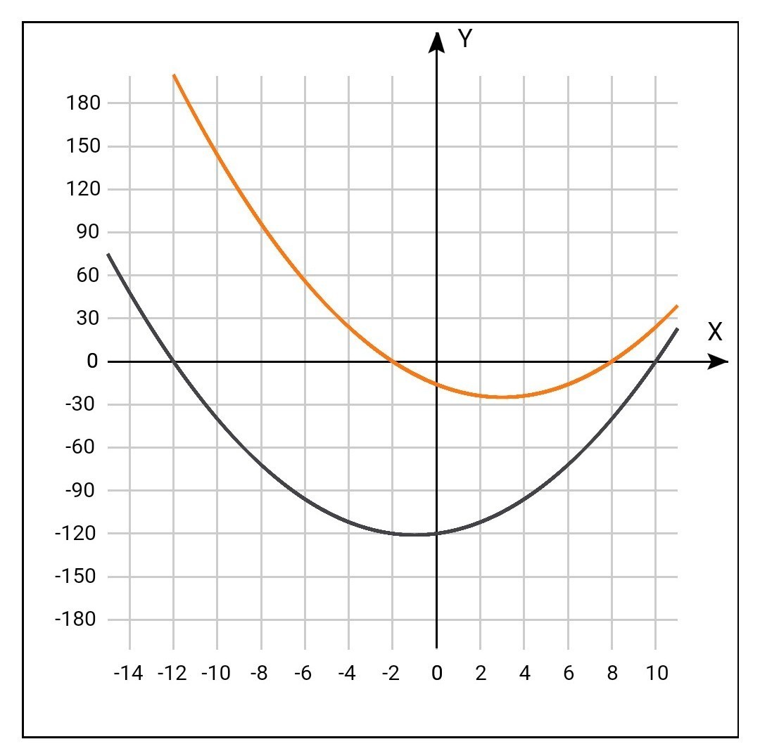 оранжевый над осью абсцисс, а черный под при х€ (-12,-2)V(8, 10)