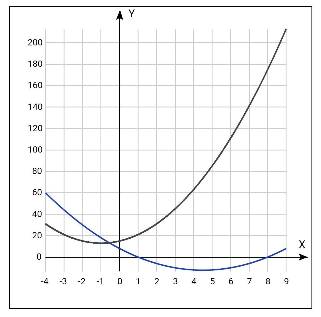 (х-1)(х-8)≤0 ( синий график)