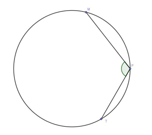 кутова міра дуги МР дорівнює 68 градусів,а дуги РТ - 47 градусів. Знайдіть кут МРТ,якщо точки М,Р,Т лежать на одному колі так , що точка Р розташована між точками М і Т.