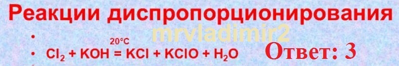 3) Cl2 + 2KOH = KCl + KClO + H2O - реакция диспропорцирования