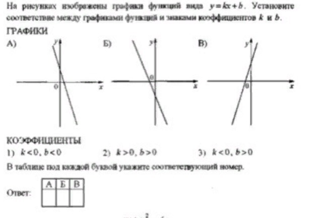 Если по оси Ох график пересекает её положительное значение, тогда коэффициент k имеет отрицательное значение.