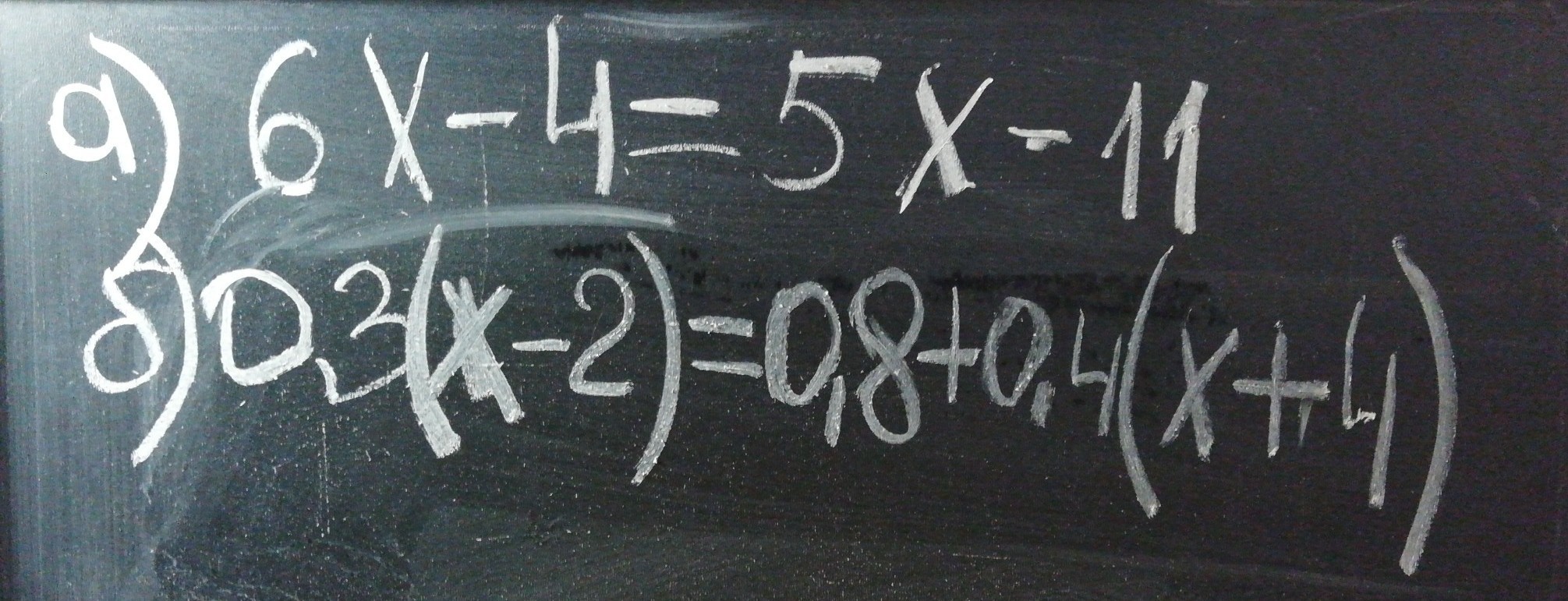 б) 0,3(x-2)=0,8+0,4(x+4)