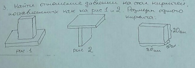 В двух случаях сила давление будет одинаковой( 2mg), тогда отношение давлений = обратном отношению площадей снизу;s1=30*20=600 см^2