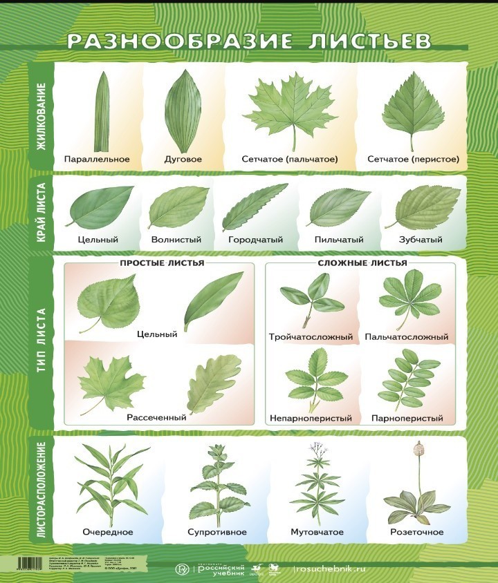 многообразие листьев : бывают разные листья . их очень много и все выглядят не похожия на друг друга бывают простые и сложные листья . Подробно можно посмотреть и увидеть на картинке.
