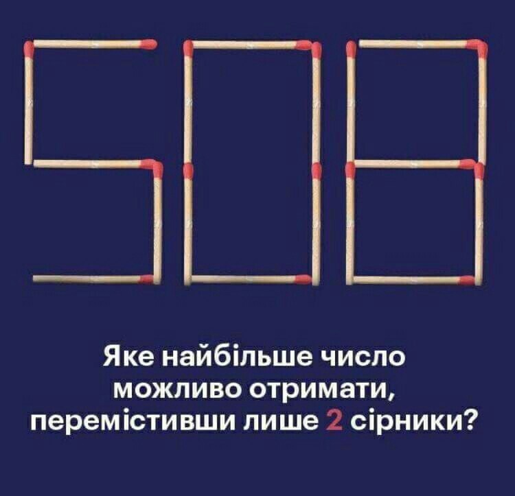 Яке найбільше число можно отримати, перемістивши лише 2 сірники? Помогите решить пожалуйста!