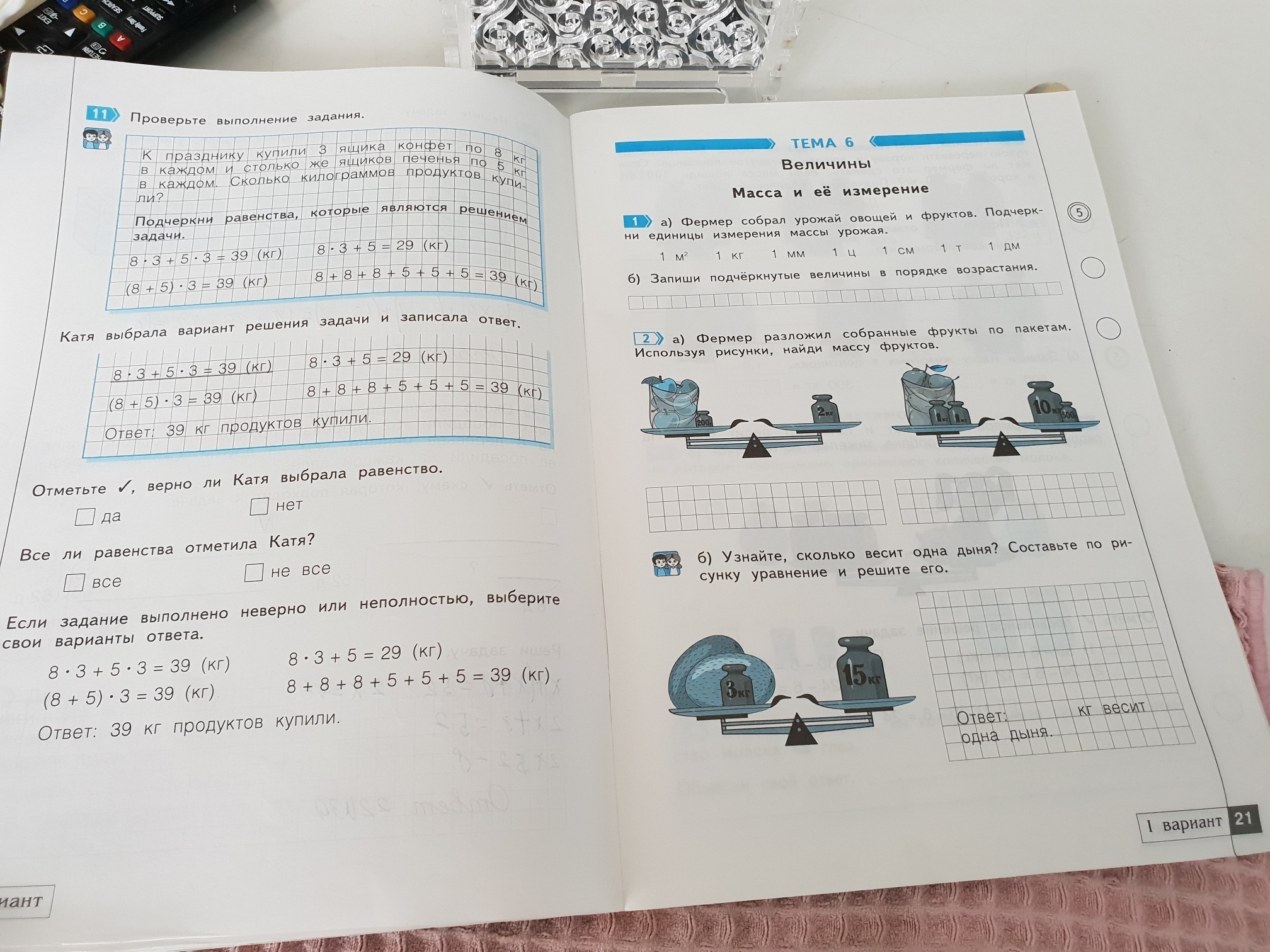 (15-3):2=6кг-весит 1 дыня