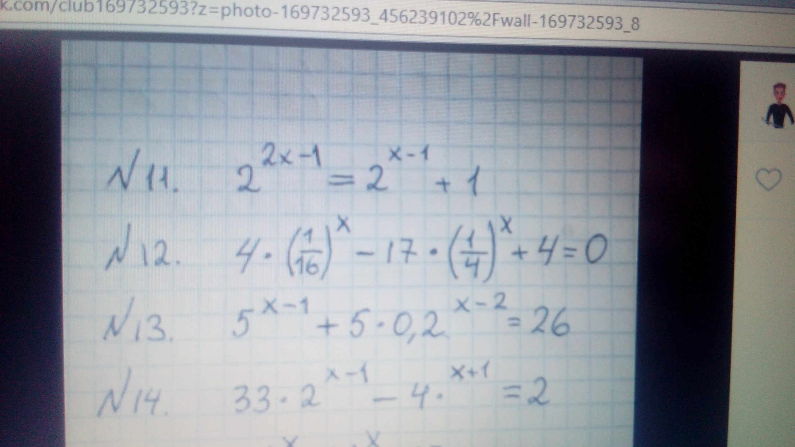 2²ˣ ⁻ ¹ = 2ˣ⁻¹ + 1|·2; 2²ˣ= 2ˣ + 2; 2²ˣ - 2ˣ - 2 = 0; - квадратное уравнение относительно 2ˣ.