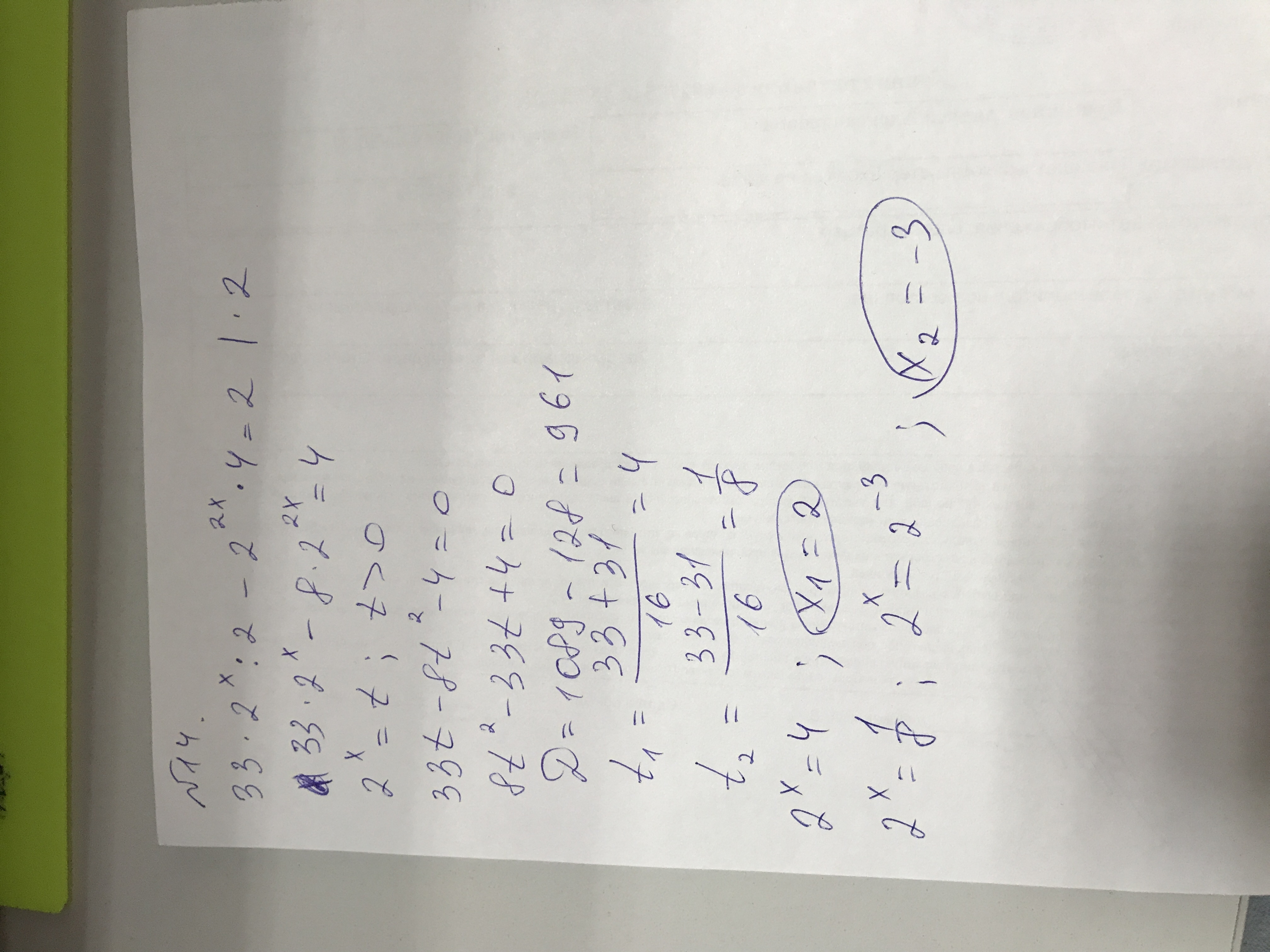 2ˣ = (33 - 31)/16 = 1/8; 2ˣ = 2⁻³; x₂ = -3.