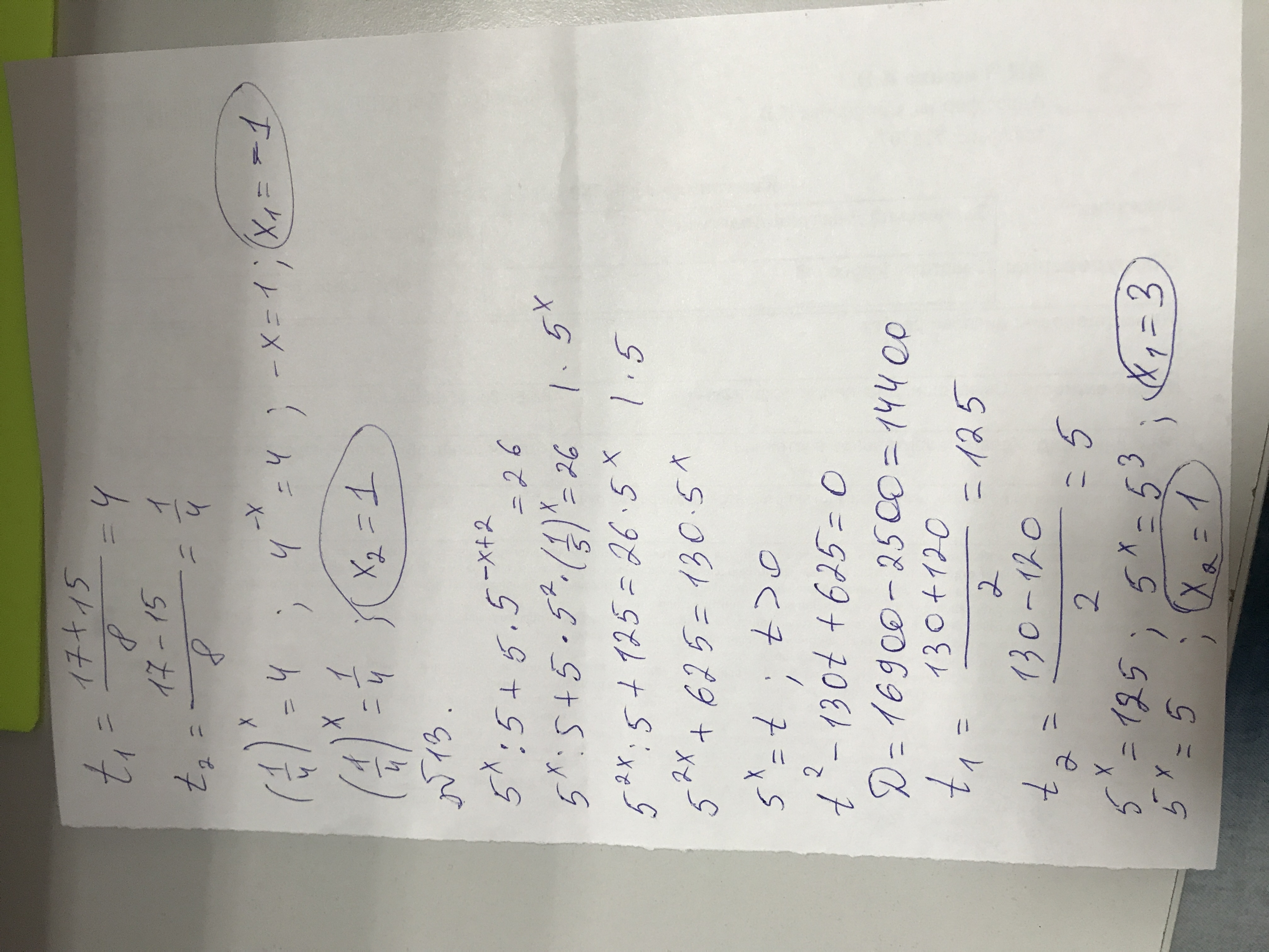 5ˣ⁻¹ + 5·0,2ˣ⁻² = 26; 5ˣ⁻¹ + 5·5²⁻ˣ = 26|·5ˣ⁺¹; 5²ˣ + 5·5³ = 26·5ˣ⁺¹;